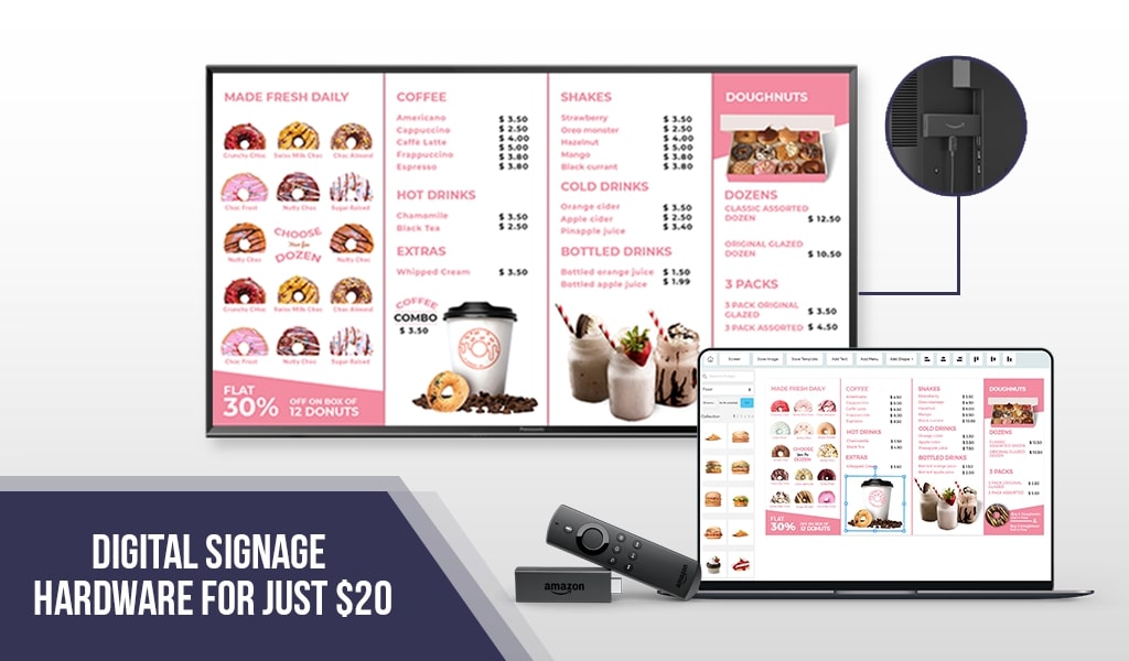 What if we are to tell you that you can get your signage up and running with just $20 worth of digital signage hardware? Sounds dreamy, right?