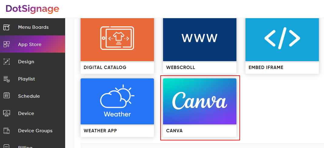 Step 1 - Find the Canva App in DotSignage