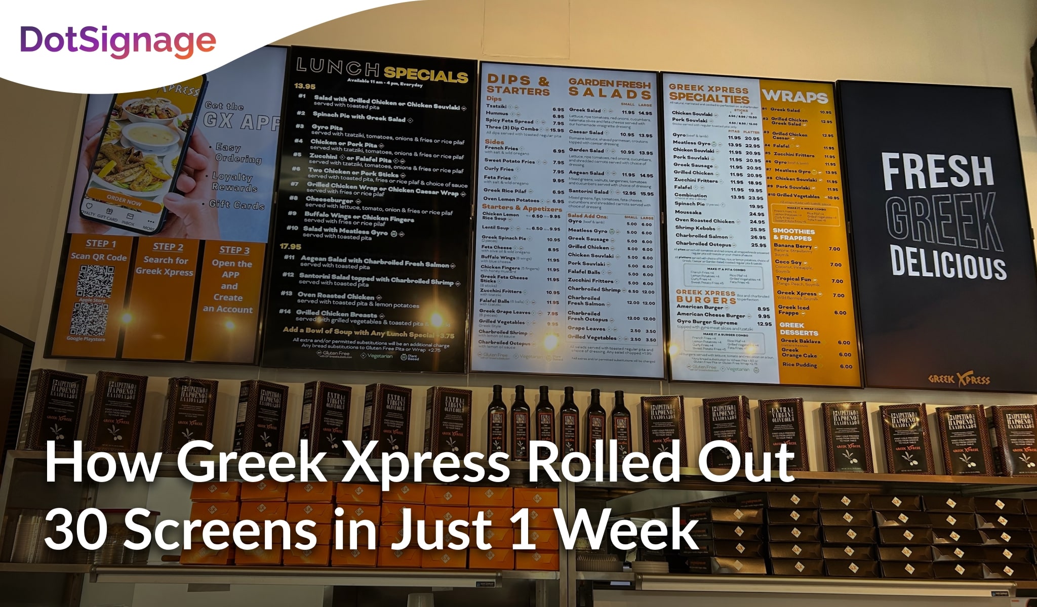 Greek Xpress’s experience offers lessons for any growing restaurant chain, retail franchise, or business looking to employ multi location digital signage.
